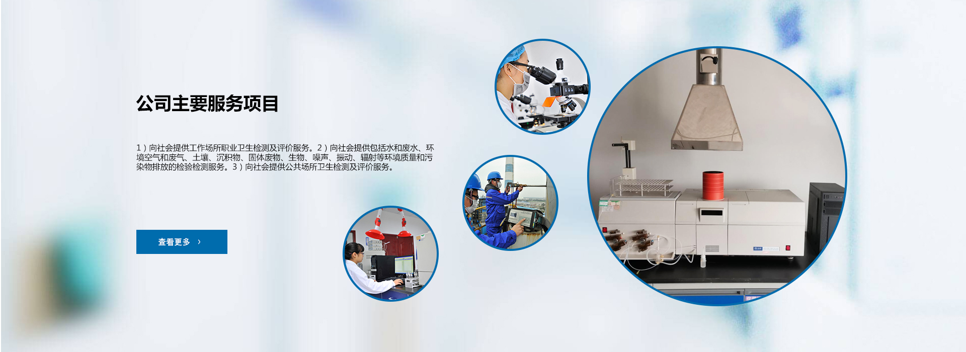 ????????實(shí)驗(yàn)室實(shí)行企業(yè)化管理,獨(dú)立經(jīng)營(yíng)、核算、自負(fù)盈虧。本公司位于金華市東湄工業(yè)區(qū)金源街505號(hào)A1東邊3樓,總建筑面積為1500余平方米。儀器設(shè)備主要是:原子吸收分光光度計(jì)、原子熒光光度計(jì)、氣相色譜、紫外分光光度計(jì)、電子天平、顯微鏡、大氣采樣儀、粉塵采樣儀、煙氣、塵采樣儀等。實(shí)驗(yàn)室配備有理化通風(fēng)櫥、微生物潔凈工作臺(tái)、生物安全柜等配套的檢測(cè)設(shè)施設(shè)備……